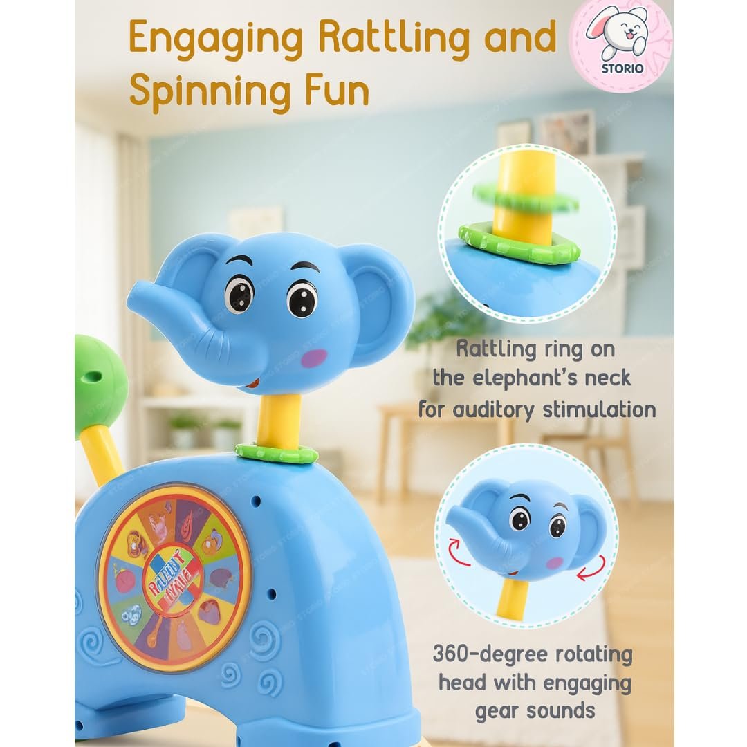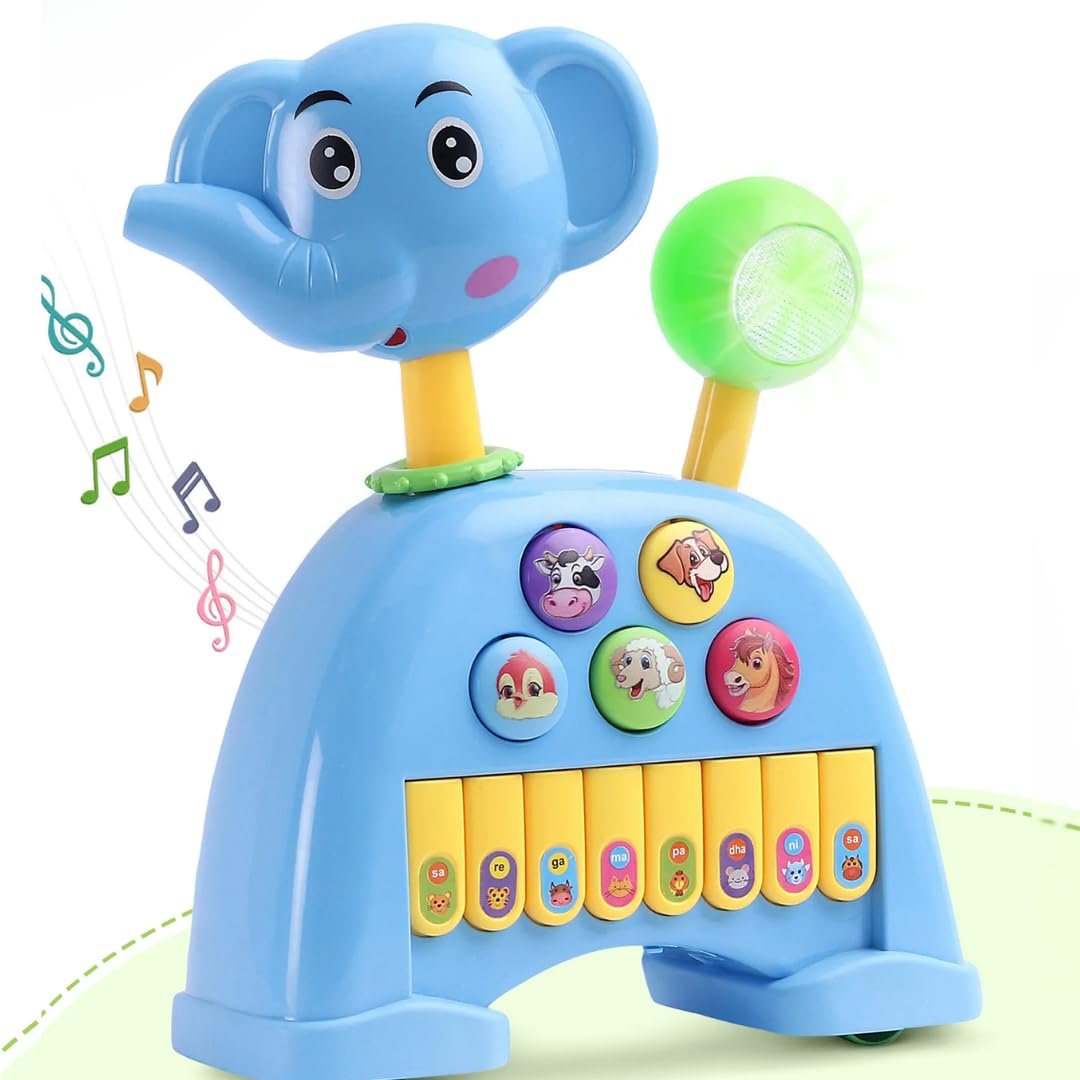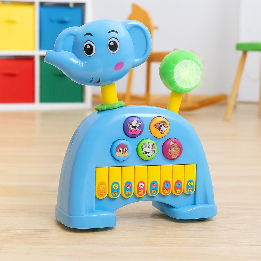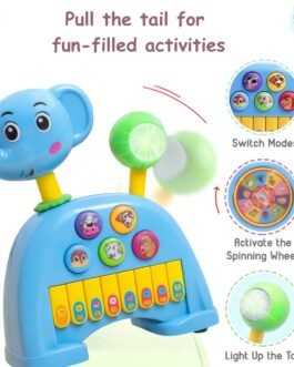 Storio Musical Light & Sound Elephant Piano with 5 Modes of Animal Sound (Colour May Vary)| Soothing Melodies| Interactive Modes| Spinning Wheel| Ideal Gifting Option