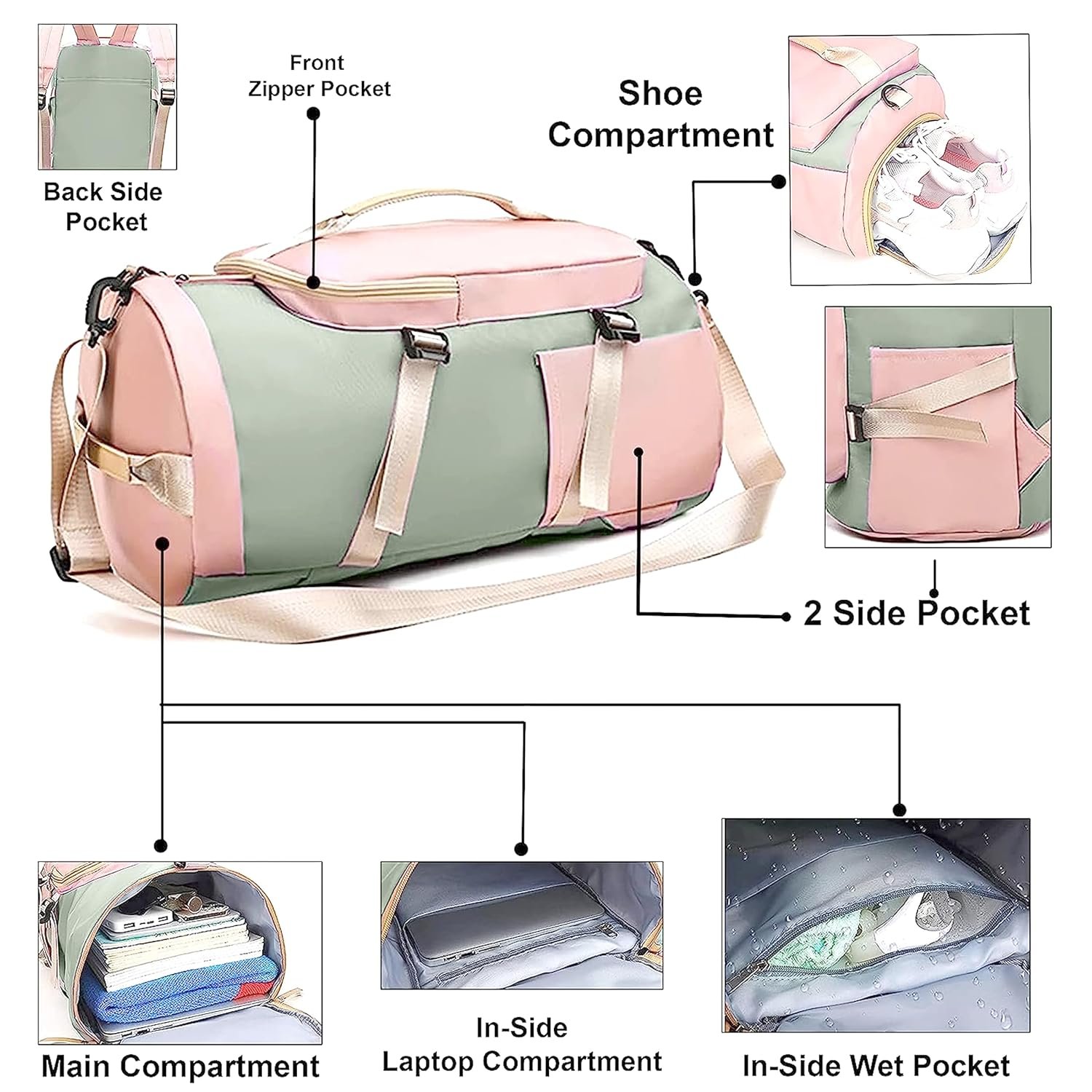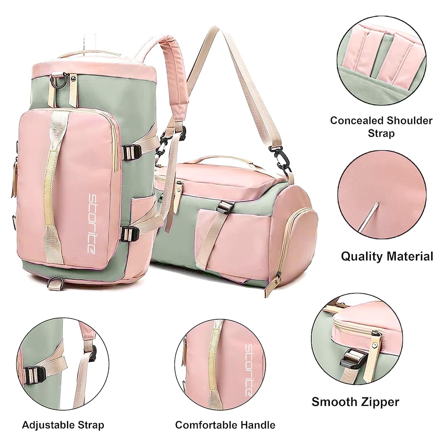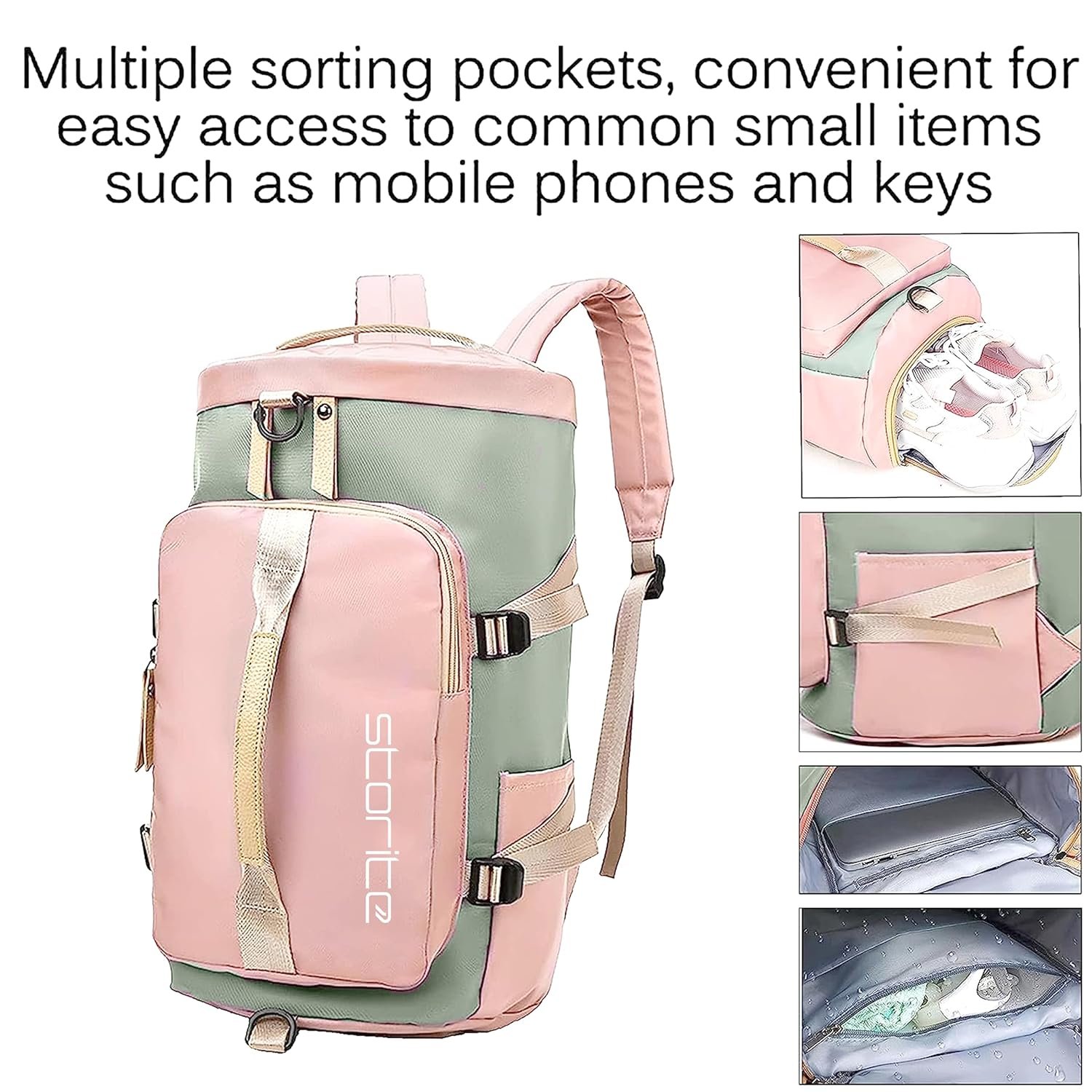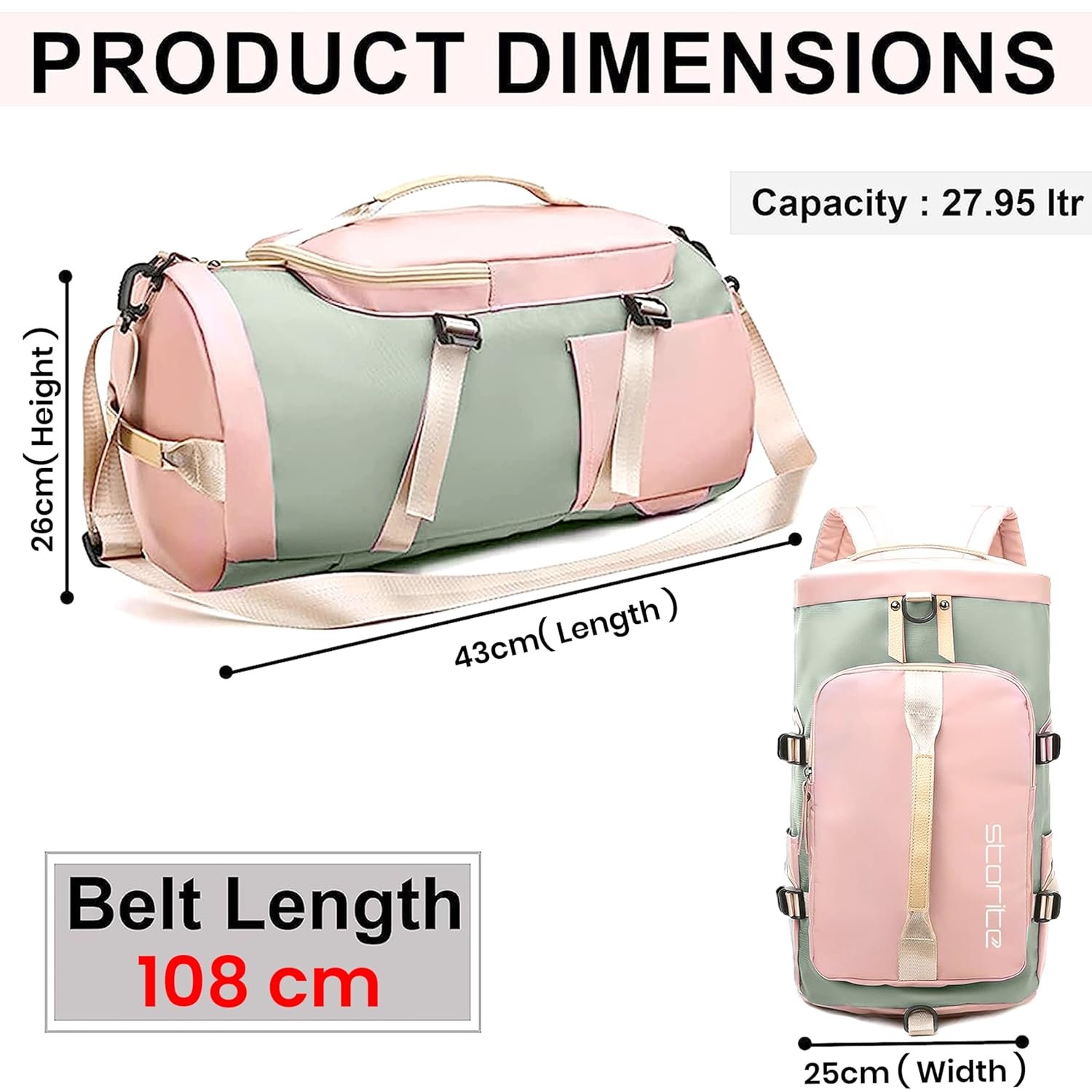 Storite Nylon 25Cm Small Imported Lightweight Waterproof Duffle Bag, Rucksack Travel Bag For Women With Separate Wet Pocket & Shoes Compartment, Backpack Carry Luggage Bag(43 x 25 x 26 CM)
