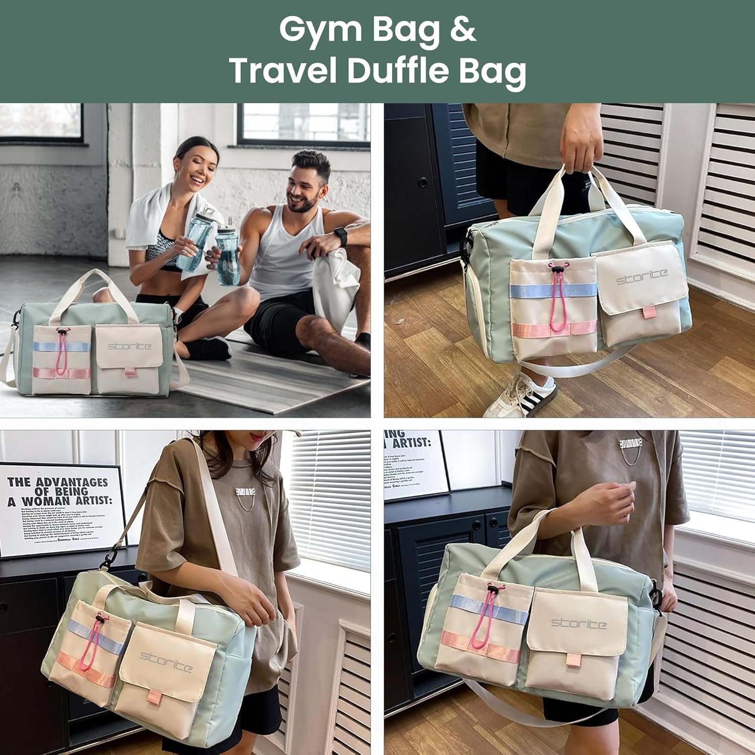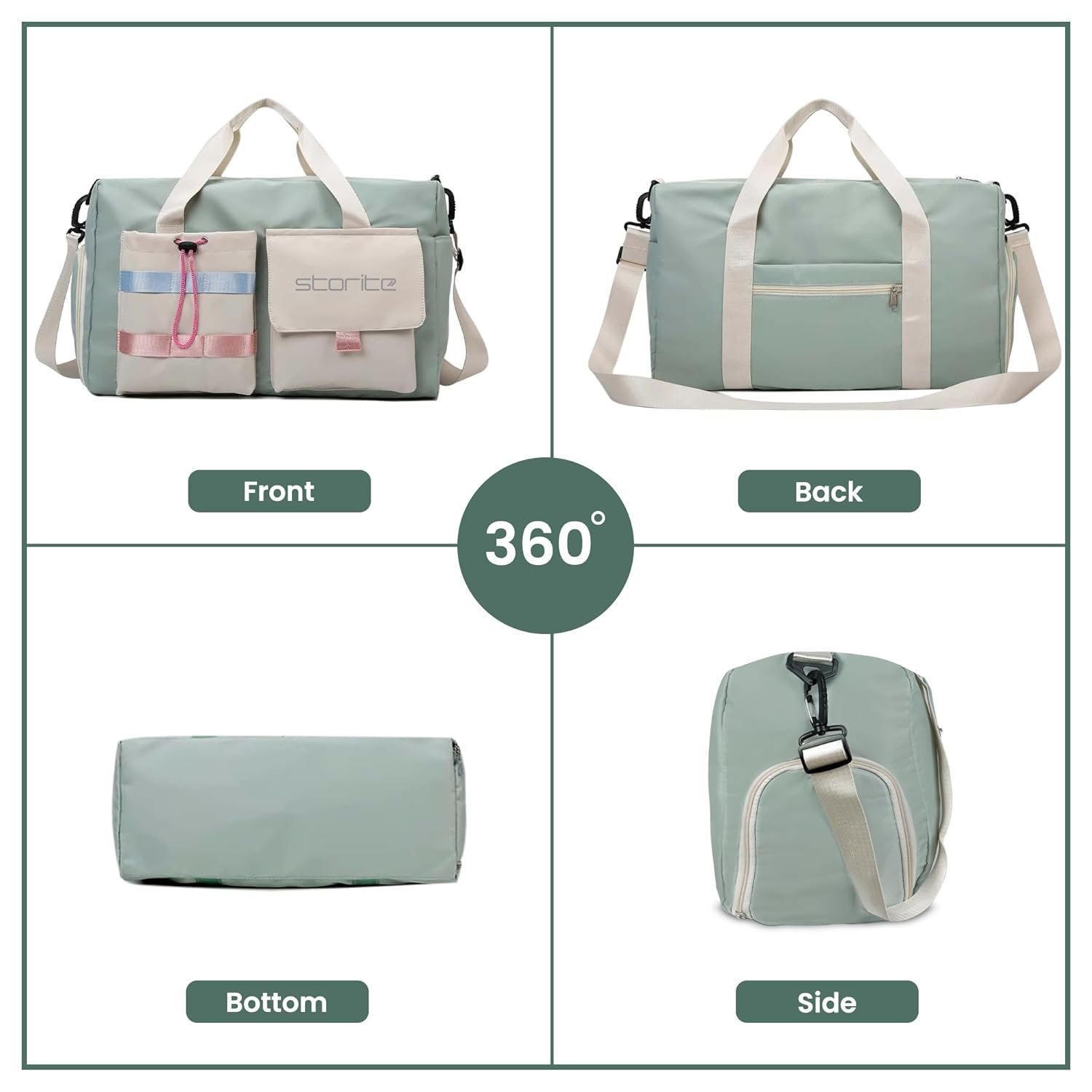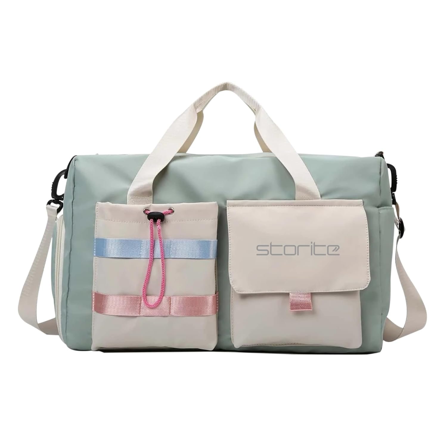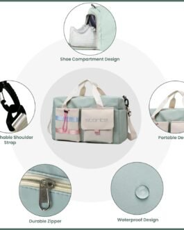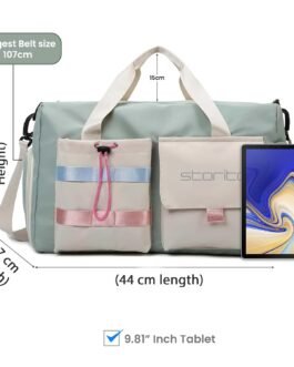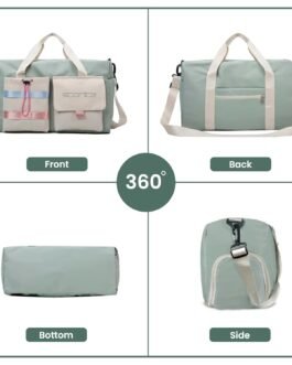 Storite Nylon 44 cms Imported Travel Duffle Bag Multi- Pocket Sports Shoulder Bag for Women with Wet Pocket & Shoe Compartment Weekender Overnight Travel Luggage Bag (Pista Green -44cmX31cmX17cm)