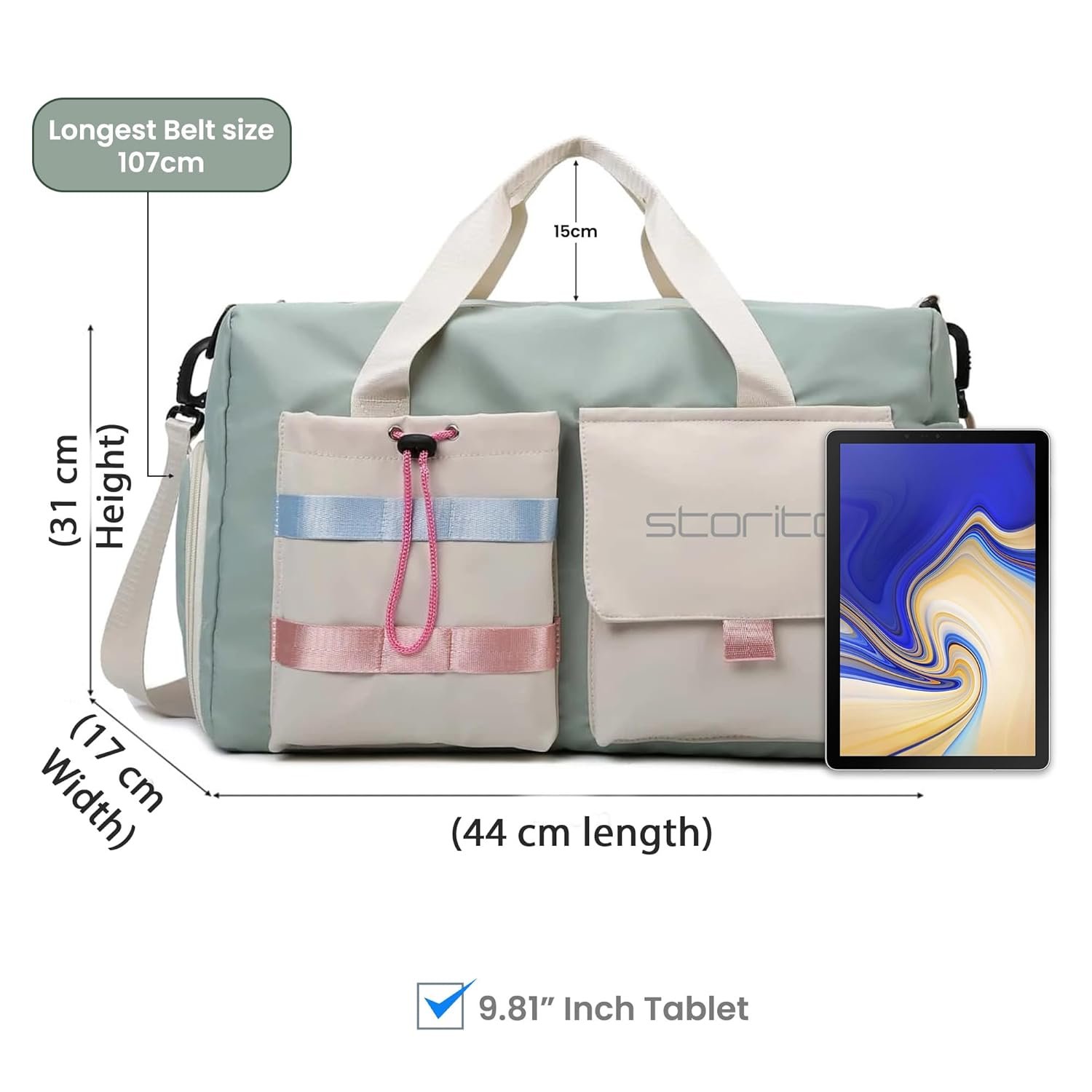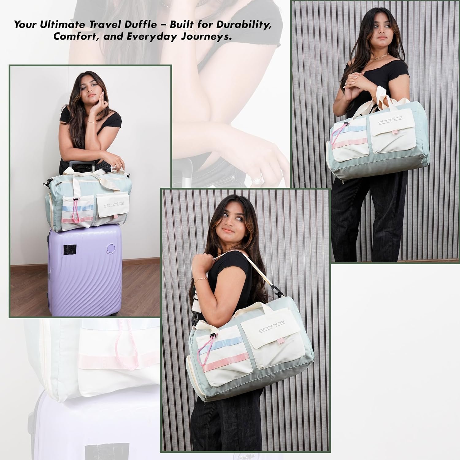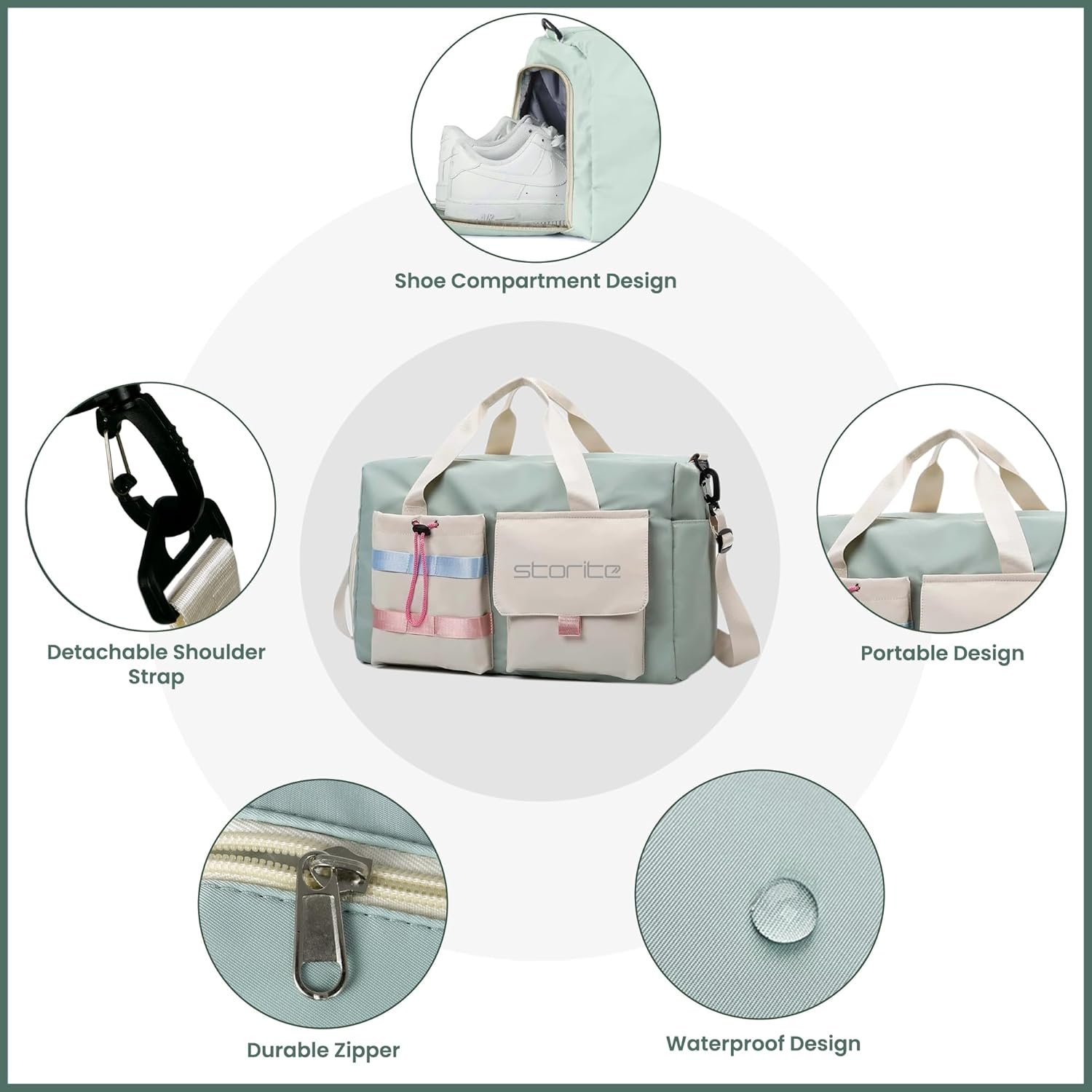 Storite Nylon 44 cms Imported Travel Duffle Bag Multi- Pocket Sports Shoulder Bag for Women with Wet Pocket & Shoe Compartment Weekender Overnight Travel Luggage Bag (Pista Green -44cmX31cmX17cm)