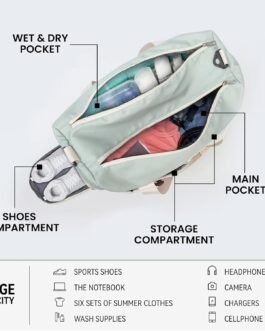 No of Compartments : 1 wet Pockets + 1 Main Pockets + 1 Shoe pocket + 1 back Zipper pocket