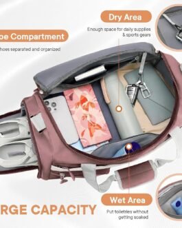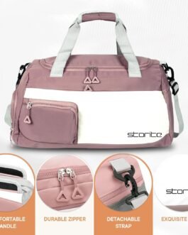Storite Nylon 50 cms Imported Travel Duffle Bag Multi- Pocket Sports Shoulder Bag for Women with Wet Pocket & Shoe Compartment Weekender Overnight Travel Luggage Bag (Deep Pink – 50 x 25 x 27 Cm)