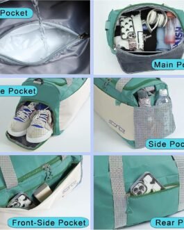 No of Compartments : 1 Main compartment + 1 small wet pocket + 1 shoe pocket + 1 side Mesh pocket & 1 back small zipper pocket