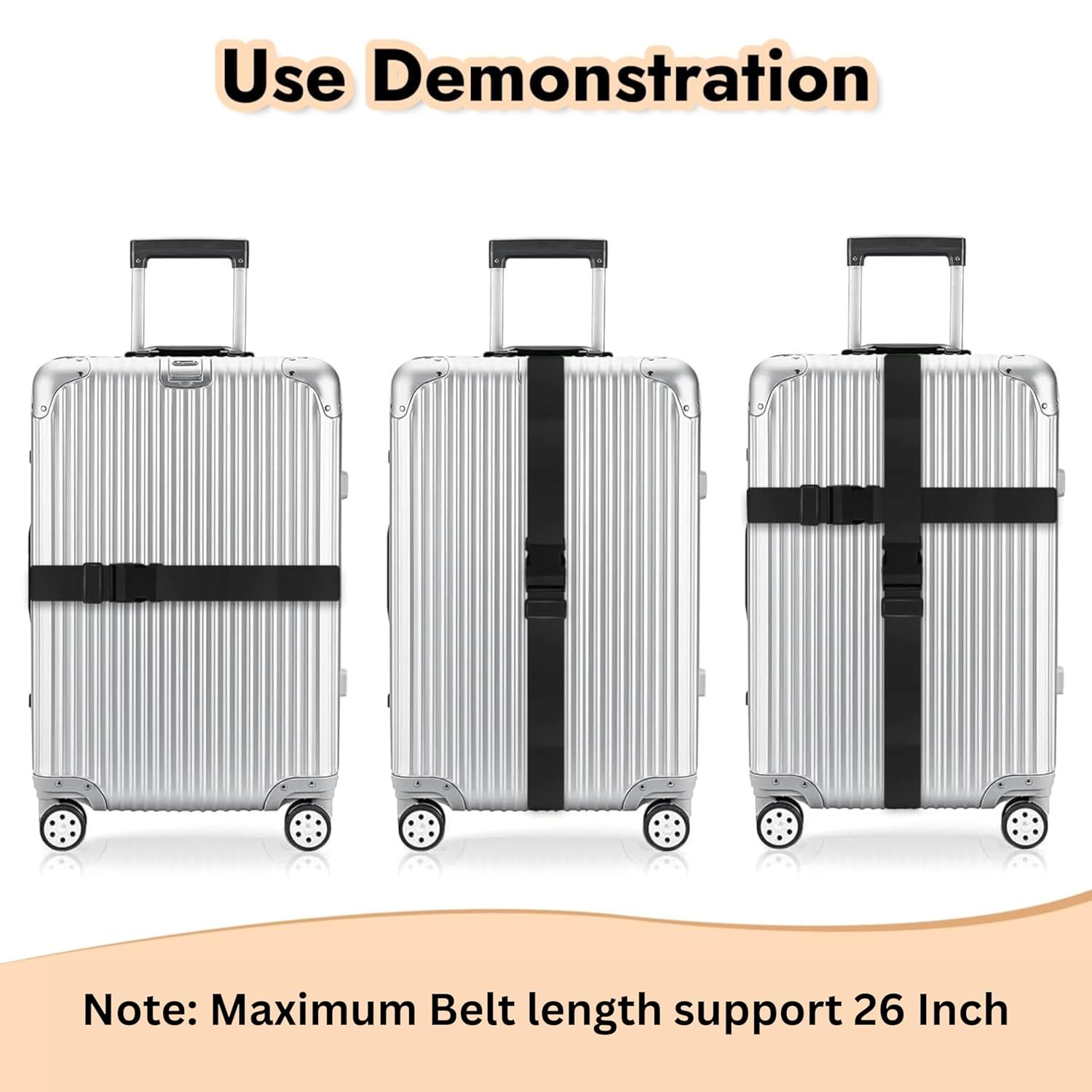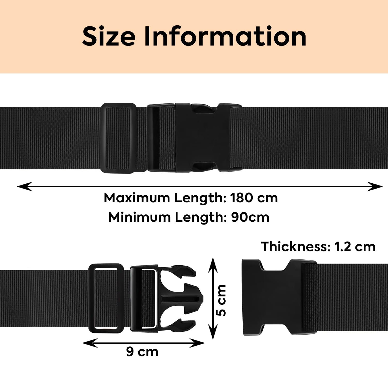Note: Maximum Belt length support 26 Inch. Versatile Luggage Straps: This set includes 2 luggage straps, each 2 inches wide and 1.8 metres long, suitable for securing luggage bags.