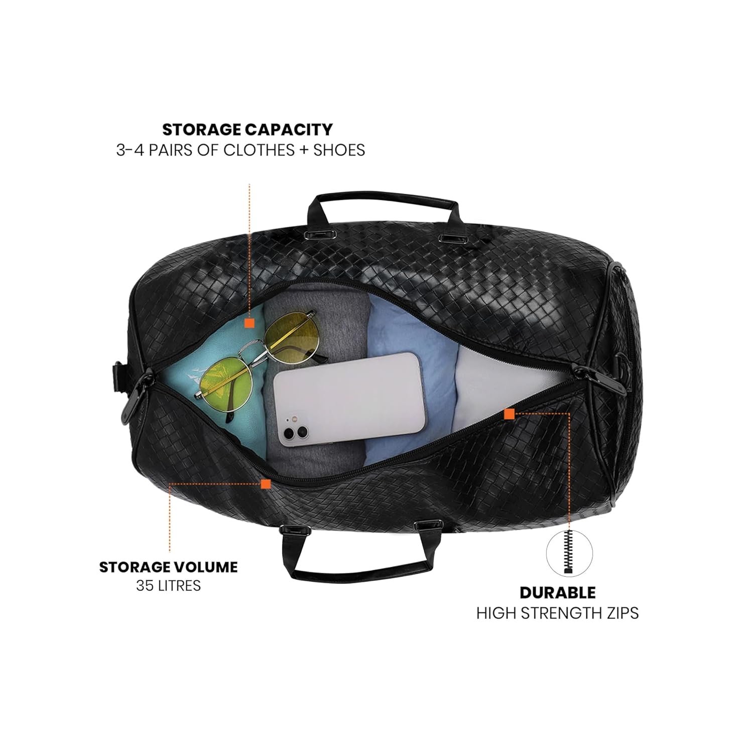 Storite Pu Leather 50 cm Luggage Travel Duffle Bag Sports Gym Shoulder Bag for Men Outdoor Weekend Bag for Men with Shoe Compartment – (Black – 50 x 22 x 30 Cm)