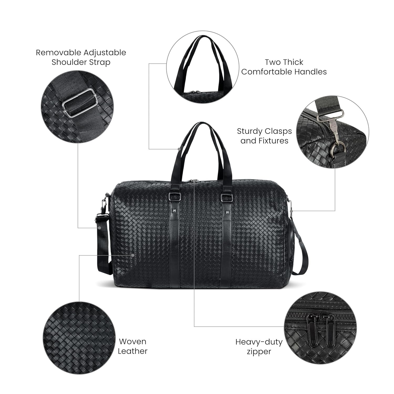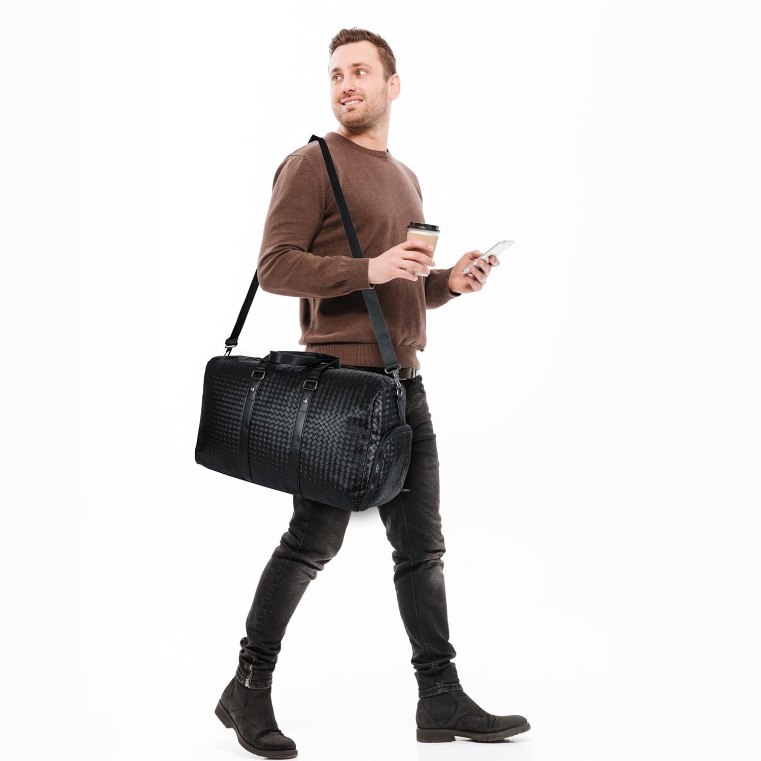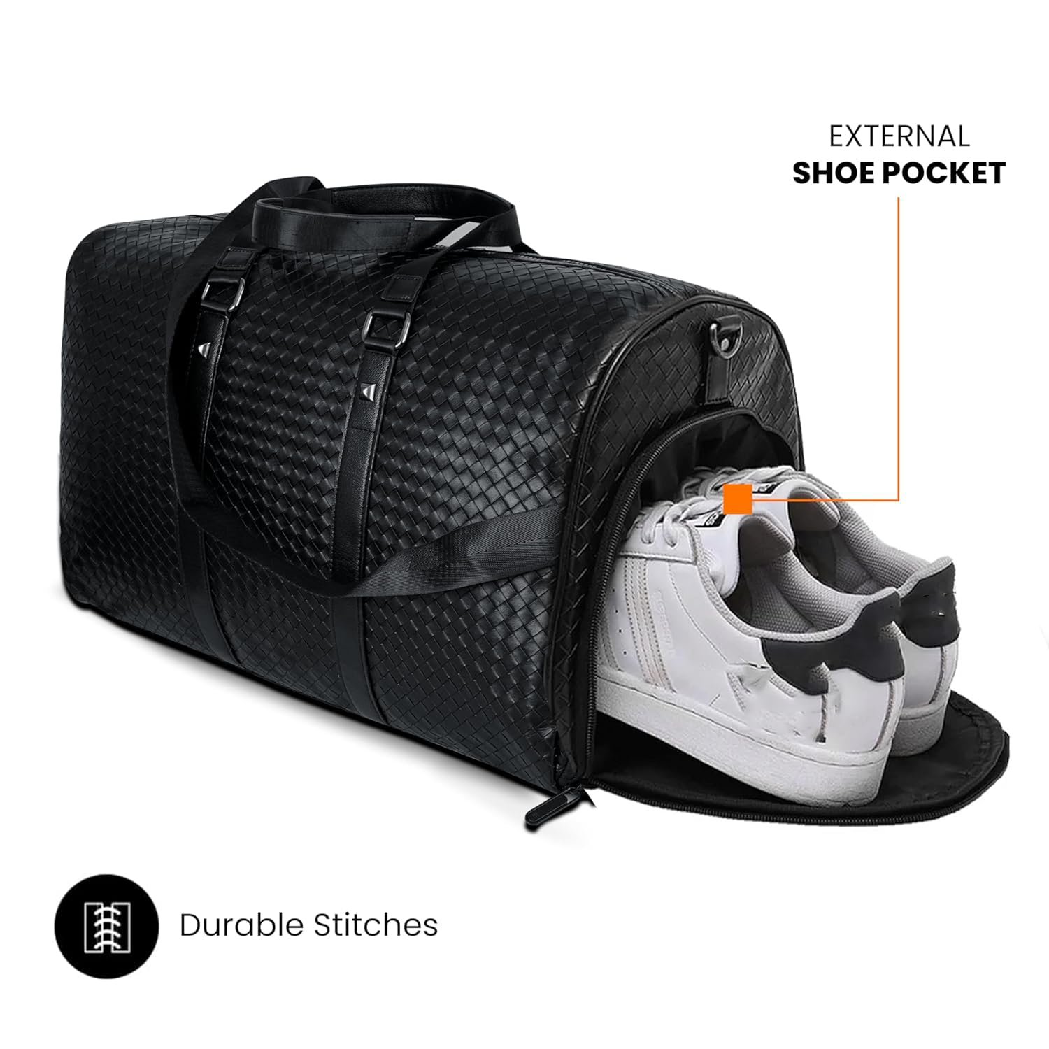 Durable PU Leather: This duffel bag is made of high-quality durable PU leather, making sure that your belongings remain safe and secure during travel Duffle bag.