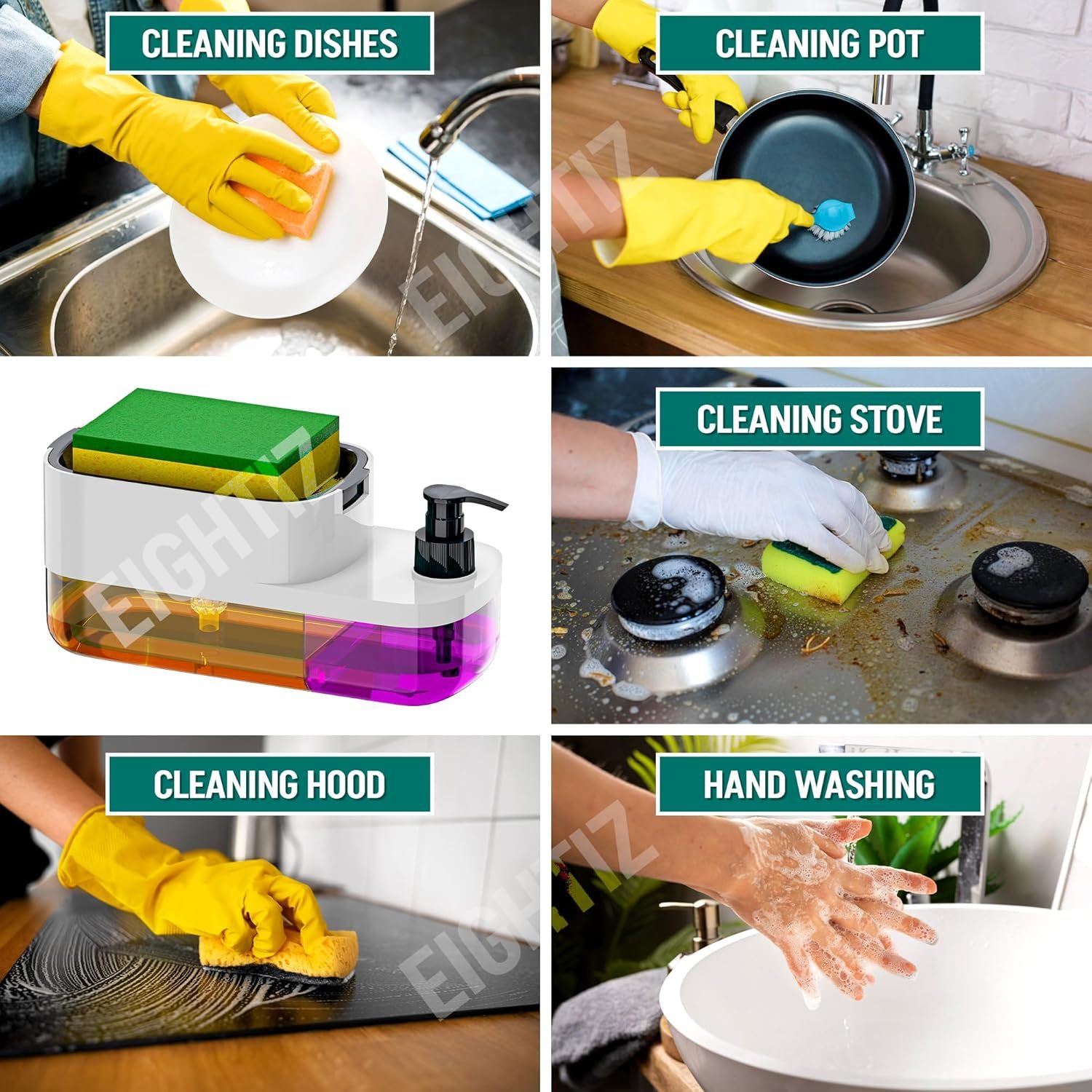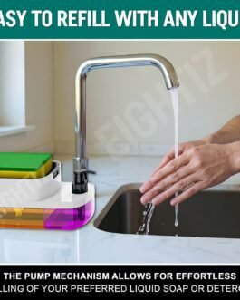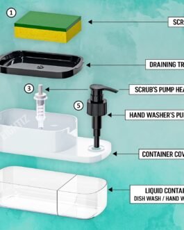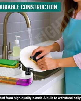 Versatile Design: Features a liquid soap pump, a built-in sponge holder, and a detachable dish for added functionality and convenience.