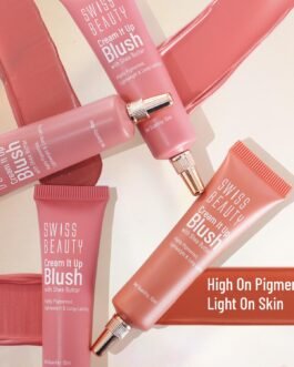 Fall in love with your flushed cheeks with the Swiss Beauty Cream It Up Blush. With highly pigmented shades, a lightweight formulation, skin nourishing ingredients and long-lasting wear, this cream blusher is a true gem. Experience the sheer delight of the lightweight texture as the “”Cream it Up”” Blusher glides seamlessly onto your skin. Its velvety smoothness ensures effortless blending, leaving you with a flawless and natural finish. Say goodbye to heavy, cakey formulas and enjoy a weightless feel that allows your skin to breathe, keeping you looking fresh and dewy throughout the day. The creamy blush delivers a smooth colour payoff without any streaking or settling into fine lines. It can also be applied to the eyes and nose to create a captivating look. Its lightweight formula can be applied to bare skin or seamlessly layered on top of makeup. Just dab a few dots onto your cheeks, and you are ready to elevate your makeup game. Its sleek design makes it travel-friendly and convenient for on-the-go touch-ups. With five stunning options, ranging from soft and subtle to bold and striking, you have endless possibilities to create captivating looks for any occasion.