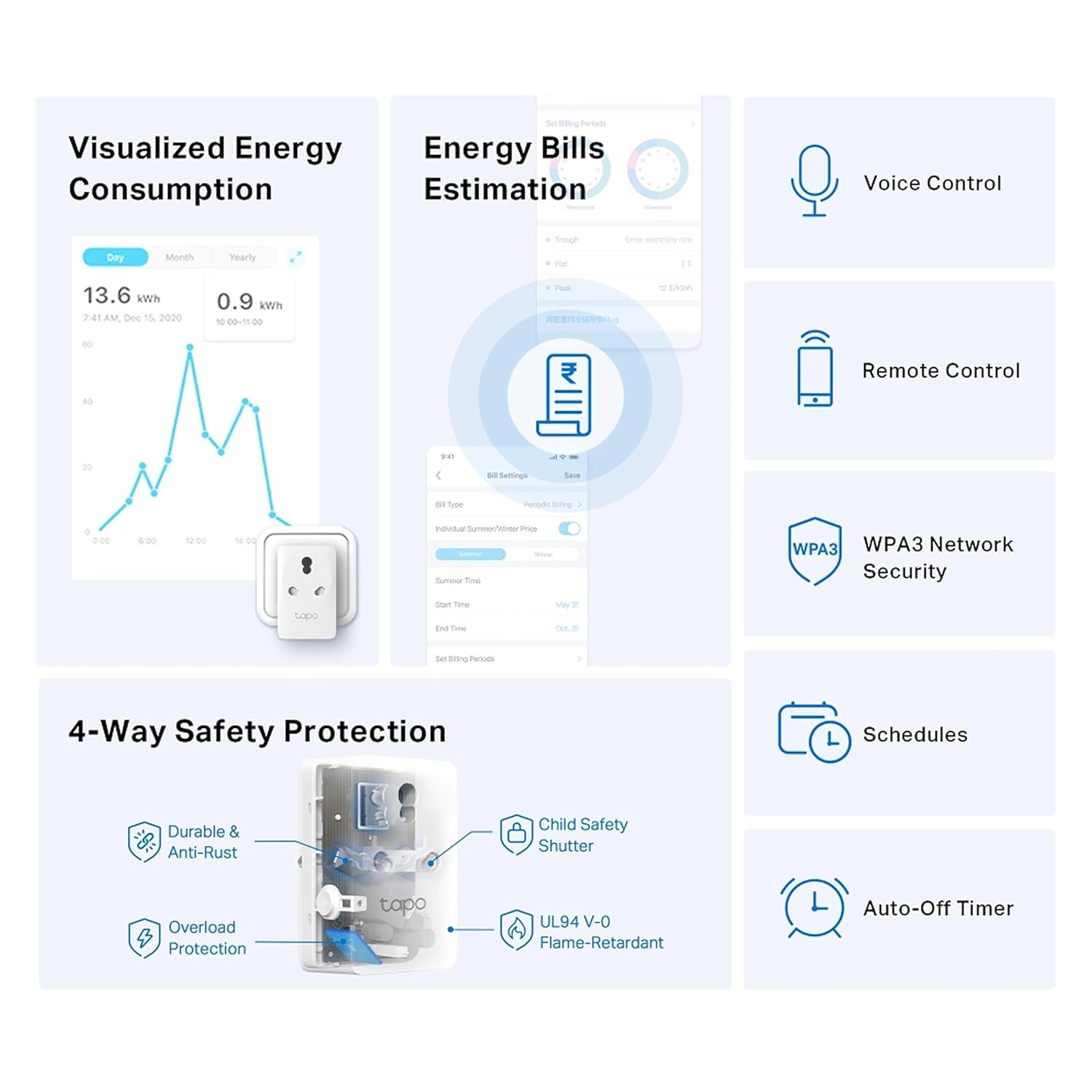 Energy Monitoring —— Monitor real-time power consumption and energy spend via the Tapo App