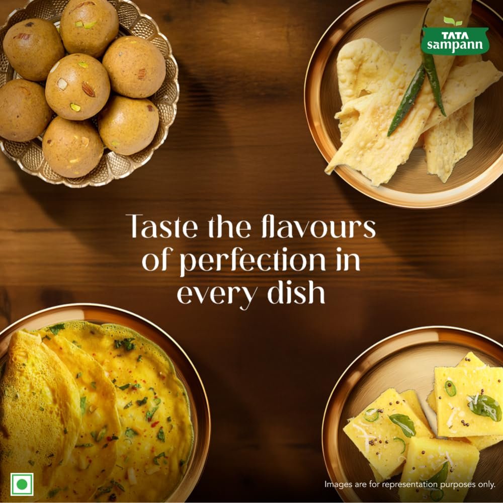 Tata Sampann Fine Besan made from 100% unpolished chana dal is all you need in the kitchen to enjoy an all-natural, authentic taste of in all your favourite recipes. It lets you indulge in dishes like besan ladoo, dhokla, kadhi, fafda, sev and other namkeens. Recommended by Sanjeev Kapoor, Tata Sampann Besan undergoes a 5 step purity process to ensure that besan in every packet you buy is uniform and of premium quality. Karo Goodness ki Shuruaat!