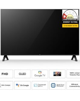 Smart TV Features: FHD QLED Google TV |1GB RAM | 8 GB ROM | 64-bit Quad Core Processor| Wi-Fi 4 | Google Assistant |Prime Video, Netflix, Hotstar, Zee5 and more| Web Browser | Screen Mirroring| Energy Rating: 1 Star | Annual Energy Consumption: 95 kWh