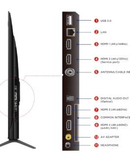 Connectivity: 4 HDMI Ports | 1 USB port | 1 Lan | 1 Antenna Input | 1 Digital Audio Out