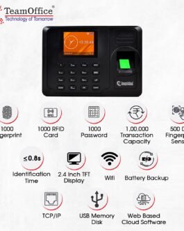 The device has a capacity of up to 1000 users and can store up to 1,00,000 transactions.
