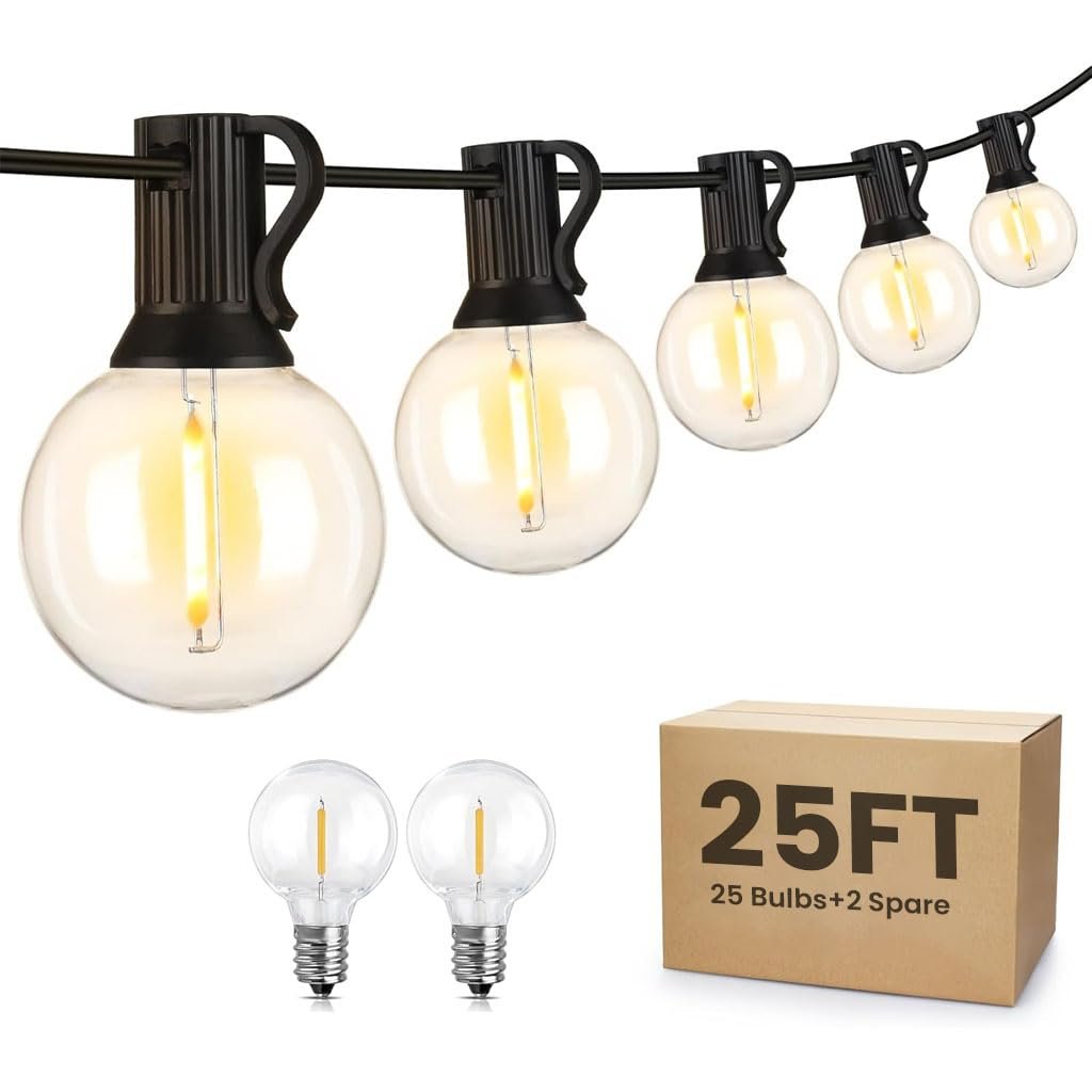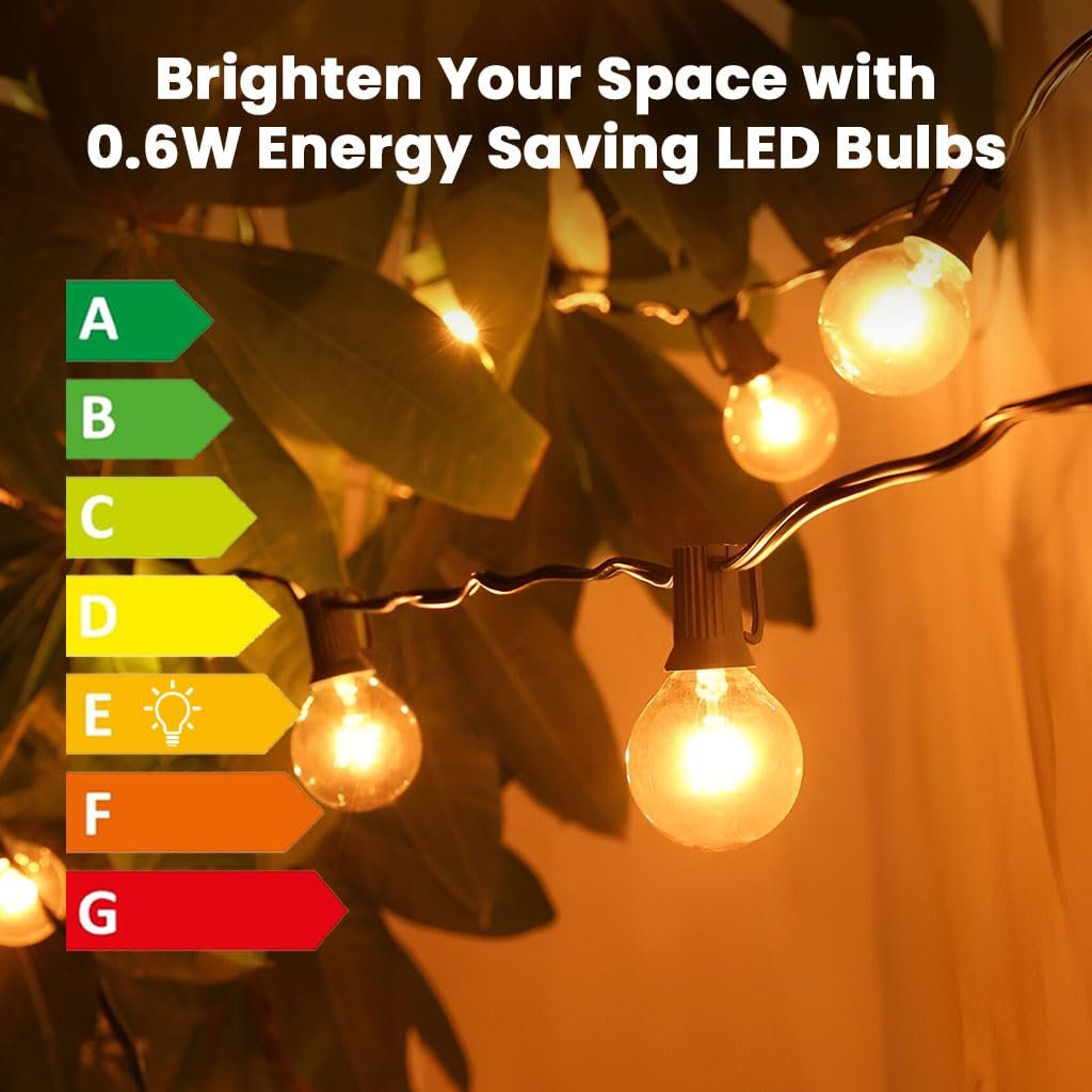 EXPANDABLE CONNECTION SYSTEM: Unlike traditional string lights, these G40 globe lights support end-to-end connections. You can connect up to 150 bulbs for extended lighting coverage, plus 2 extras, with each bulb spaced 1 foot apart along a 25-foot strand. It supports end-to-end connections, making them ideal for larger spaces.