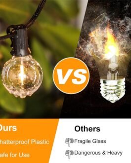 SHATTERPROOF & DURABLE BUILD: Made from premium plastic, the bulbs are shatterproof, ensuring safety and durability. The commercial-grade copper and PVC wiring make the lights weather-resistant and sturdy, preventing damage from accidental drops or collisions during installation or transport.