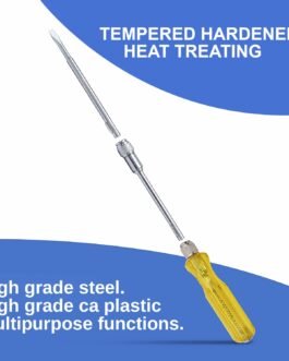 8 IN 1 SCREWDRIVER SET – Themisto Screw Driver Kit contains 3 flat blades of 4mm, 5mm and 6mm, 3 Phillips heads of PH0, PH1 and PH2,an extension rod, and a round poker bar with a transparent PVC handle with LED light