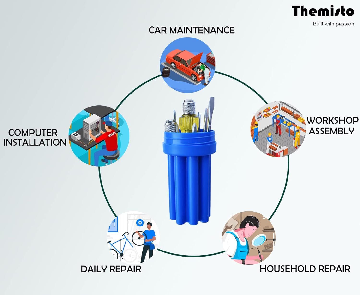 Ergonomic design handle, it is comfortable to hold even for the long-time use. screwdriver set can be easily repaired almost any product in your daily life, such as repairing Household, Computer installation, Car maintenance, Workshop Assembly and other electronic devices. With the help of THEMISTO tool kit, your precision repairs would be smooth and efficient.