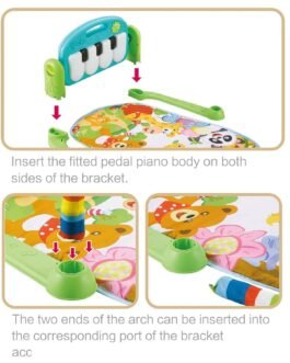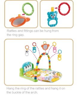 It is an ideal gift for your newborn kids, nice playthings puppet for comforting them, meanwhile develop their abilities of parent-child communication, grasping, hand-eye coordination. This baby gym features a musical piano that is made of durable ABS Plastic. Best gift for your babies.Muscle Development: 3 months old babies can lie down on this colorful mat and kick on the piano keys as well as they touch the hanging toys which will help your child to strong their muscle arms, legs, neck, and dorsalHand-eye Coordination: 6 months old babies can sit and play the hanging ring bell, which will train grasping and capability and flexibility of baby’s small hands.Sensory Development: When babies kick on the piano keys; it will send out the sound of different music and thus stimulate baby’s sense of hearing.Object Recognition: Activity Playmat will help your little one to recognize the different colors, various objects, and shapes.0-6 months Lying down and Play – Baby can exercise limbs by constantly kicking and scratching.6-9 months Crawling and playing – Strengthen your baby’s neck, shoulder, and leg.9-18 months Sit and Play – Promote the development of the baby’s fine hand movements.