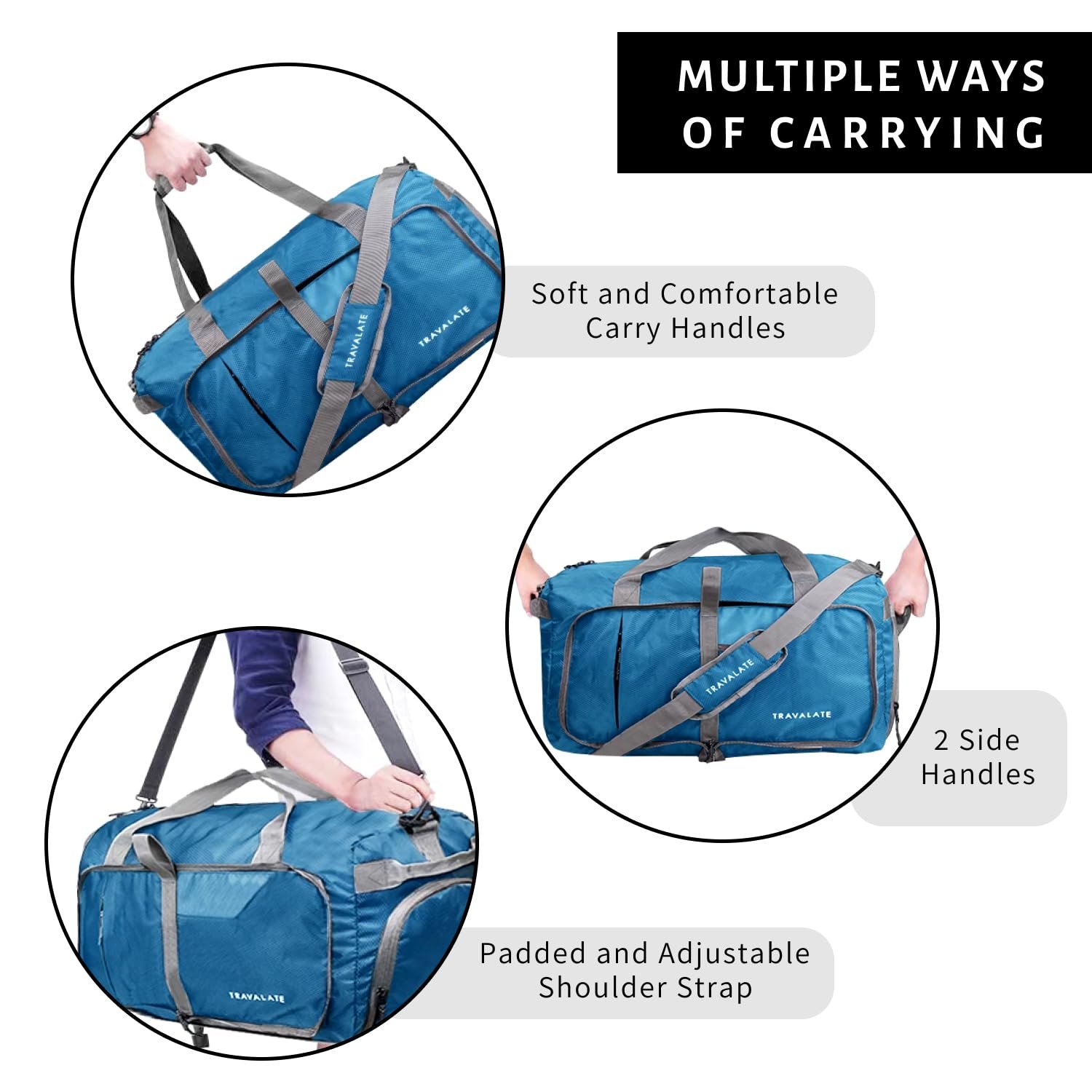 TRAVALATE 50L Foldable Travel Polyester Duffle Bag With Separate Shoe Compartment And Adjustable Shoulder Strap| Water And Tear Resistant Overnight Bag For Men & Women Blue, 25.4 Cm