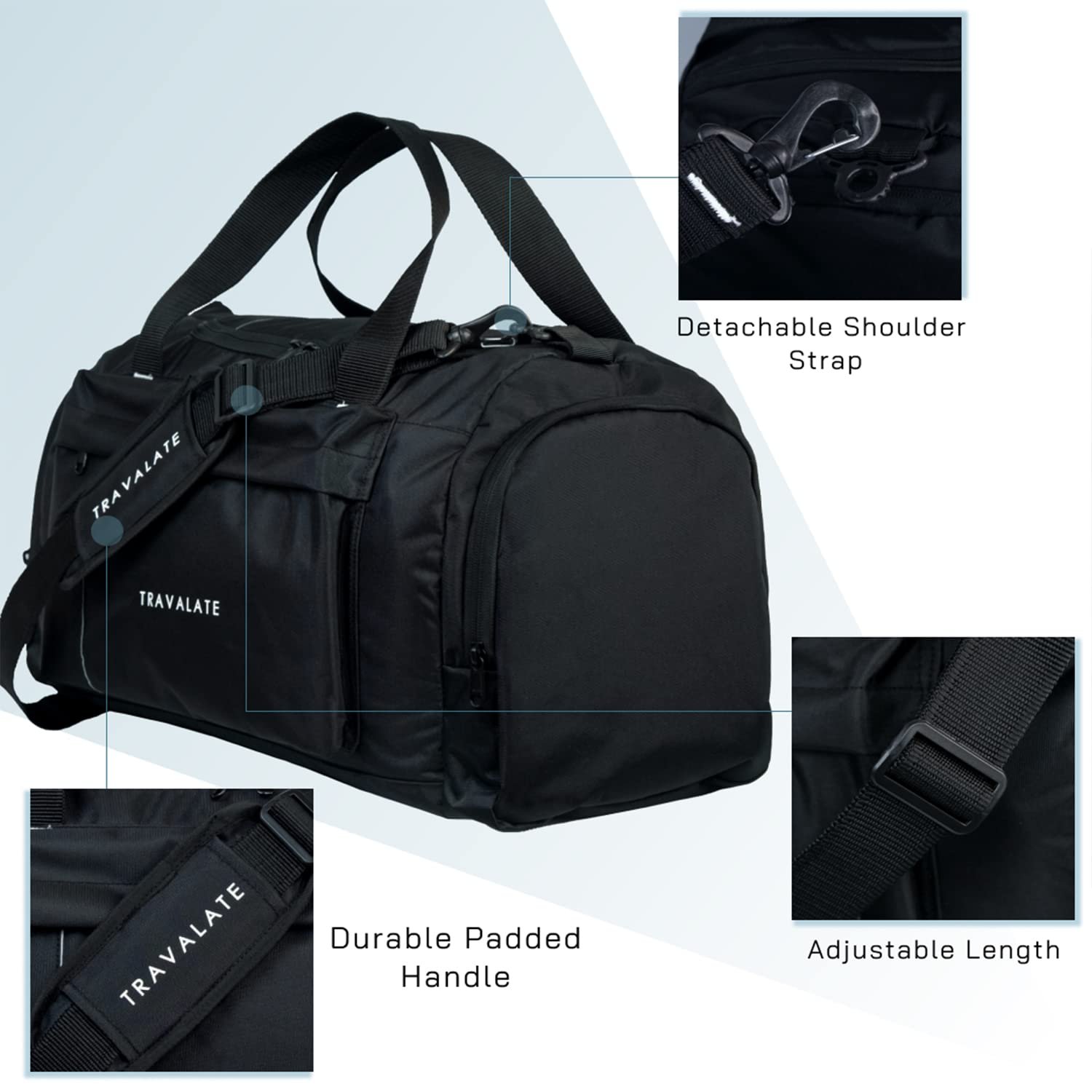 TRAVALATE Travel Duffle Luggage Bag Organizer | Multi Pocket Ultra-Light| Polyester 45 Lt| Men And Women | 21 X 09 X 11 Inch |Black, 22.86 Cm