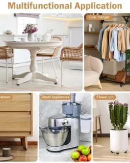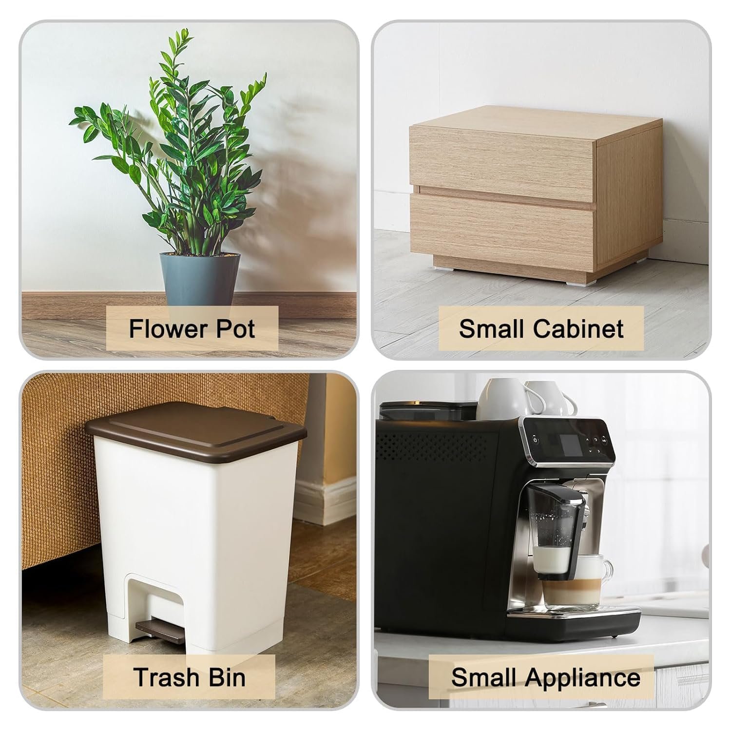 💥【Widely Used】The compact design of our stick on wheels for mop bucket allows for easy installation on the bottom of your small furniture and appliances. These small wheels for furniture are so versatile that you can mount them on the feet/legs of furniture or appliances such as coffee tables, cabinet, bookshelves, nightstands, planters, air purifiers and more.Providing 360-degree rotation and smooth movement for your small furniture and appliances.Tip: These casters can only be used on smooth and hard surfaces and may leave marks on wooden surfaces.