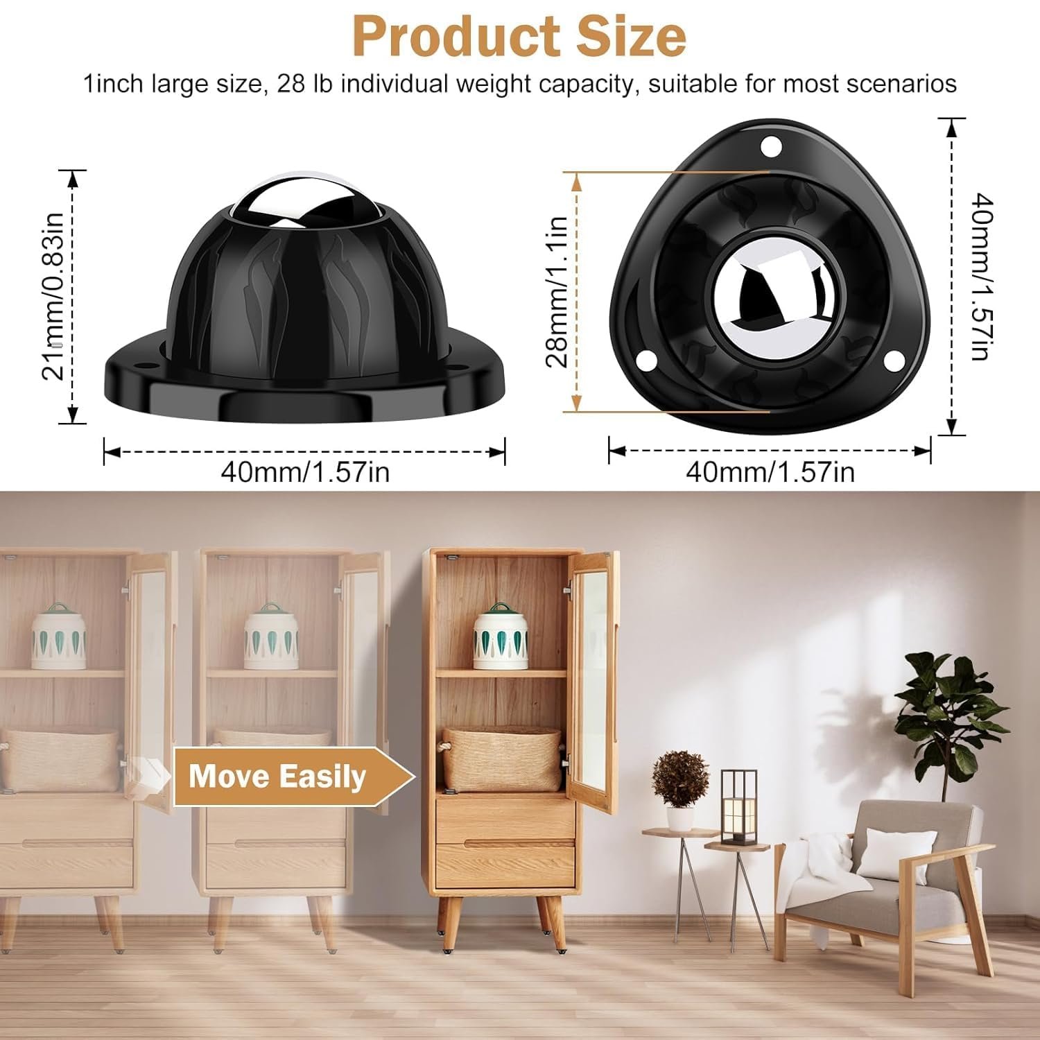 💥【1 Inch Caster Wheels】Wheels for furniture unlike common self adhesive mini caster wheels,our new furniture wheels a large 20mm(0.8inch) diameter steel ball in the ABS bracket for effortless and smooth rolling. In addition, furniture rollers carries 30 pounds. adhesive caster wheels the greater the quantities, the greater the load-bearing capacity.
