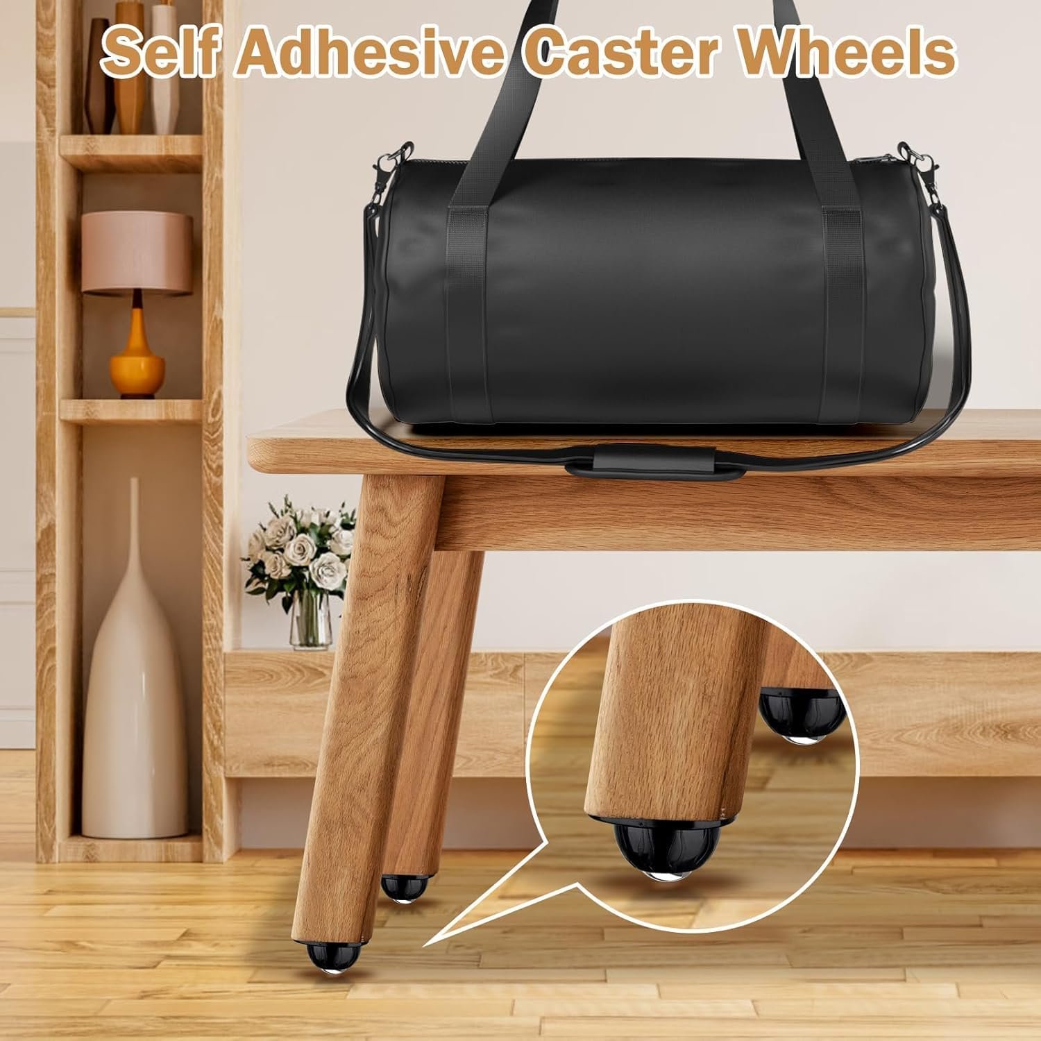 💥【Easy to Install】Rolling wheels for furniture the package includes backing adhesive and screws, self adhesive wheels allowing for 2 installation options to suit varying preferences.Whether you prefer adhesive mounting or drilling installation, these bucket wheels provide a convenient, labor saving option that can fit your furniture bases.