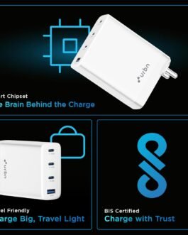 URBN 100W GaN Fast Charger | Quad Port (3 Type-C + 1 Type-A) | QC & PD Compatible | Samsung Super Fast Charging 2.0 | 12-Layer Protection | Compact Travel Adapter for Laptop, iPhone, Samsung, MacBook