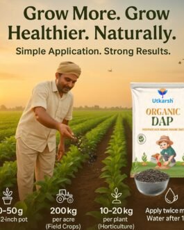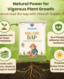 Utkarsh Organic DAP increases crop production.It improves the resistance power of crops against various diseases. It is a completely eco-friendly product. Utkarsh Organic DAP increase availability of nutrients in soil and plant. The CO2 is released during decomposition and helps to reduce the alkalinity of the soil.