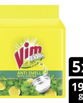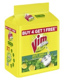 Vim is the No.1 dishwashing brand in India. More than 7 out of 10 Urban Indian Households are regular Vim Dishwash Bar users. Vim’s Dishwash Anti Smell Bar comes in a unique colour and contains 2 in 1 formulation with pudina extract that gives great in-wash freshness and also the degreasing power of lemons making it easier to remove the tough stains. Vim Anti Smell Bar eliminates 5 tough leftover smells of food like Onion|| Garlic|| Masala|| Egg and Fish from utensils|| and leaves a refreshing long lasting fragrance. It is the only dishwash bar which comes with a unique plastic coating at the bottom that prevents wastage and sogging as the coating does not let the bar come in direct contact with water and makes it last longer than ordinary bars. Vim Dishwash Anti Smell Bar can be used for cleaning all types of utensils like stainless steel|| ceramic|| non-stick ware|| glass etc. Vim Dishwash Anti Smell Bar is available in single as well as multipack. Vim’s Dishwash Liquid Gel is also available in the market. It has the power of 100 lemons(power refers to the cleaning benefits of lemons) and gives your utensils a complete cleaning and does not leave any powdery white layer of residue behind on them.*OLD