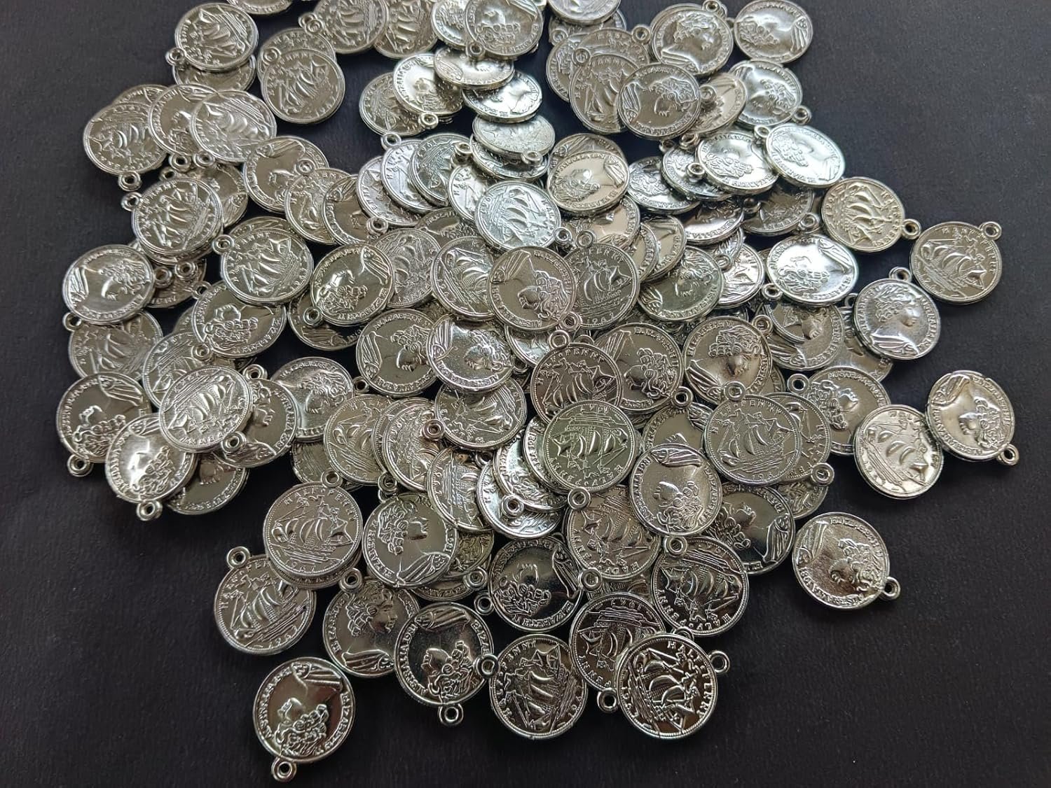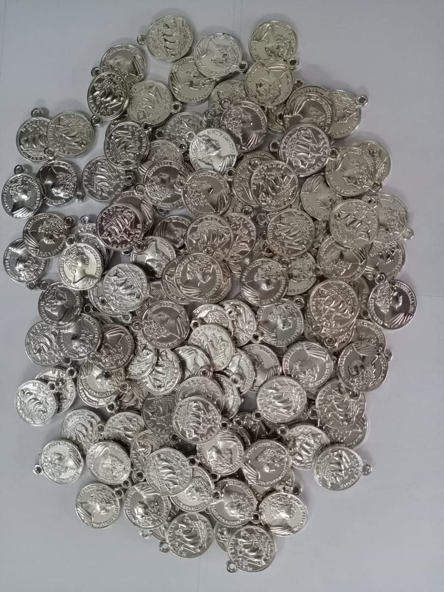 VINAYAK GALLERY Silver Gini Elizabeth Coins for Embroidery/jewellery making and Craftworks (Pack Of 100 pieces)
