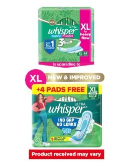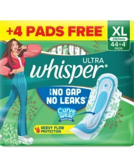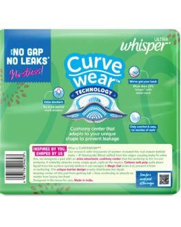 Whisper Ultra Upto No Gap No Leaks allows you to have a stress free day, even during Heavy Flow days! With Curvewear™ Technology, the cushiony centre adapts to your unique shape to lock every drop of blood into its absorbent core. These pads are more than 20% Longer versus Regular pads. These pads have a Soft new top layer that feels comfortable against your skin. Available with Disposable wrapper.