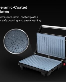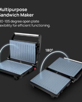 Sandwich Maker – Big size Non Toxic Ceramic plates (230mm*145 mm) opens upto 105ᶿ (Extra 15ᶿ) for easy operation and usage
