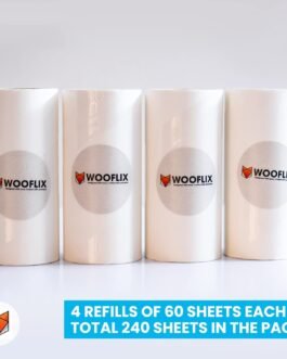 𝗔 𝗖𝗢𝗠𝗣𝗟𝗘𝗧𝗘 𝗣𝗔𝗖𝗞𝗔𝗚𝗘: Wooflix lint roller comes with a handle and 4 Sticky Roller refills. Each roller refill has 60 sheets, so in total you will get 240 highly adhesive sheets for better cleaning performance.