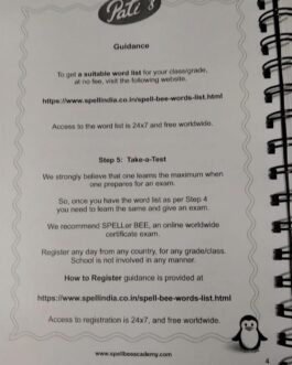 Word List Book To Prepare For Sakshi India Spell Bee Exam – Category 2 – Classes 3/4 From Spell India . Has 1000+ “Word List” Only . Children Friendly “Easy-2-Turn” & “Very Strong” Wiro Binding
