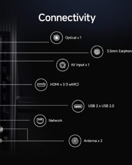 Connectivity: 3 HDMI ports to connect set top box, Blu-ray speakers or gaming console | 2 USB ports to connect hard drives or other USB devices | Bluetooth | Built-in Wi-Fi