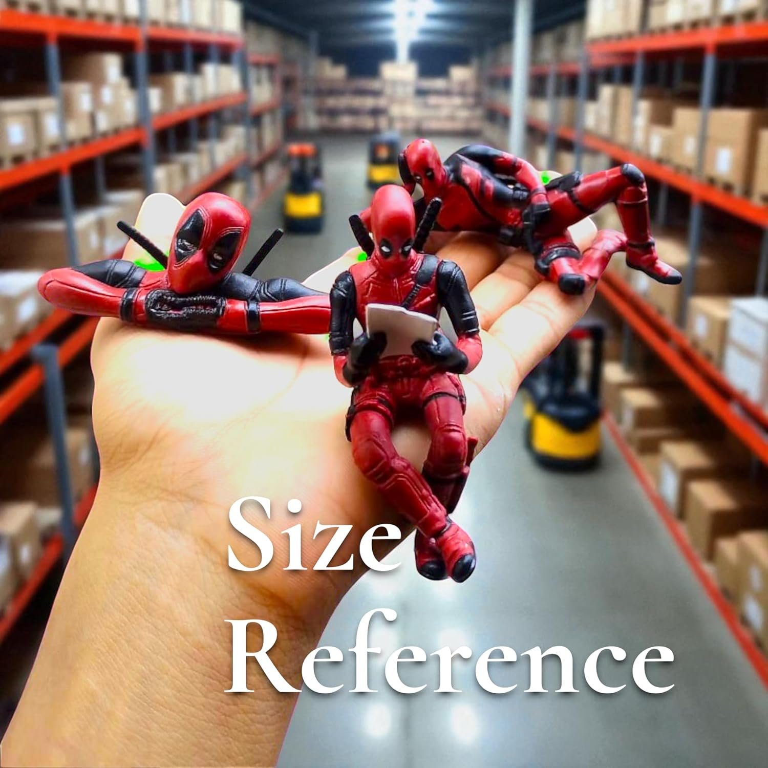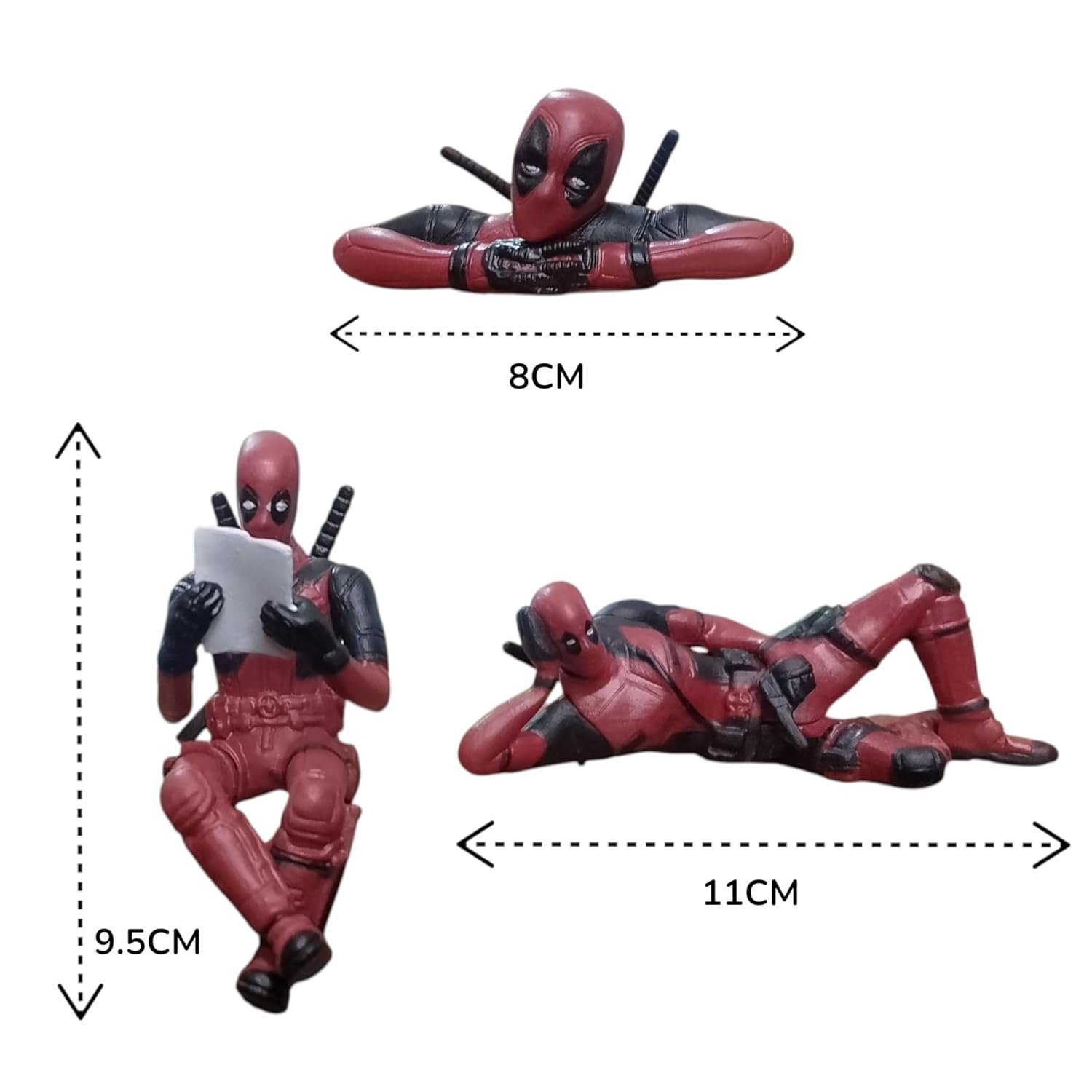 YOURKARTS.COM Dead Pool Action Figure Set, featuring three detailed PVC models that capture the iconic style of your favorite anti-hero. Perfect for decorating your car dashboard, office desk, gaming setup, or home shelves, this set adds a unique and energetic vibe to any space.