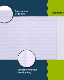 “Youva Hardcover with Magnetic Flap notebook is a unique journal/notebook because of its magnetic locking mechanism. The notebook comes with a flap that locks the cover of the book from opening loose. This book is a good companion for young executives, interns or even for personal writing purposes. The paper inside the book is of high quality and section sewing ensures that they are firmly bound. These notebooks are made from acid-free paper making them extremely safe for students. The pulp is ECF (Elemental Chlorine Free) bleached, which reduces toxic effluents that harm the environment. The paper used in this book is made from wood fibres sourced from sustainable sources like captive plantations or farm forestry, which means that no rainforests were damaged during its making.”