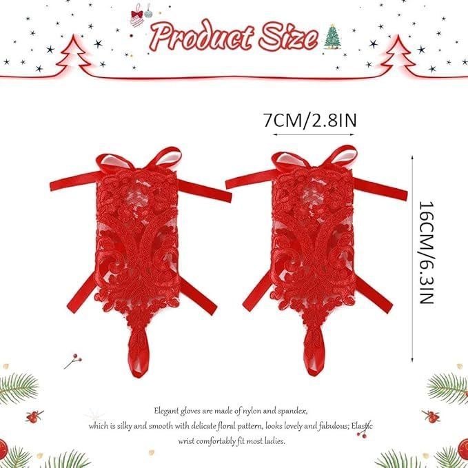YUPPIN Fingerless Lace Gloves for Women, Floral Pattern, Available in Red, White, Black, Silver, Bridal Wedding Party Accessory