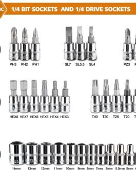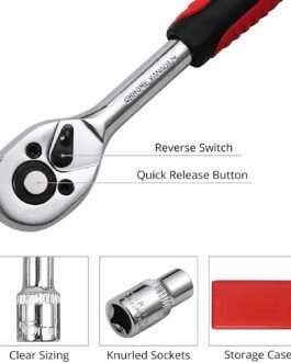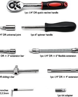 Ergonomic design with quick-release ratchet handle for easy and efficient use. Ideal gift for Home DIY enthusiast. Zaptec 46 Piece 1/4″ Drive Socket Ratchet Wrench Bit Repair Tool Kit is suitable for a wide range of tasks, including automotive repairs, maintenance, and DIY projects. This makes it a versatile and useful addition to your toolbox.