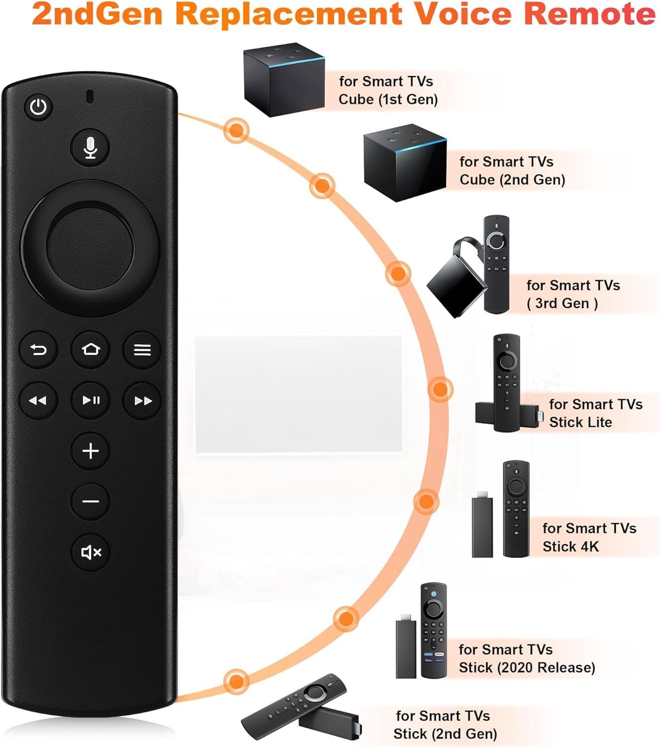 New Replacement Voice Remote Control (2nd Gen) with Power and Volume Control – Compatible with TV Cube (2nd Gen), TV Stick (2nd Gen), TV Stick 4K, TV Cube (1st Gen), TV Cube (EX69VW), TV Stick (3rd Gen), TV Stick Lite, and TV (3rd Gen, Pendant Design)