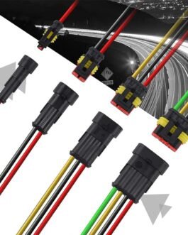 This 1/2/3/4 pin car waterproof electrical wire connector set comes with male & female terminal, silicone waterproof plugs, red clips, to meet all your needs.